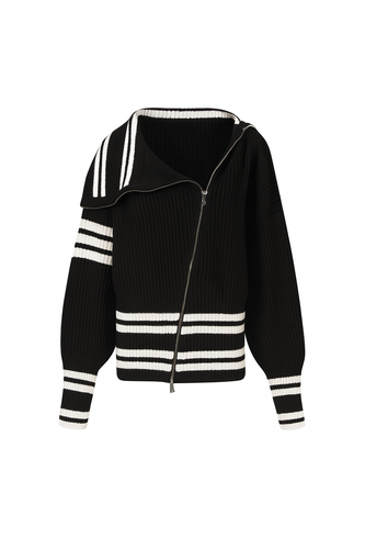 THE ASYMMETRIC ZIP RIBBED SWEATER — BLACK/IVOR