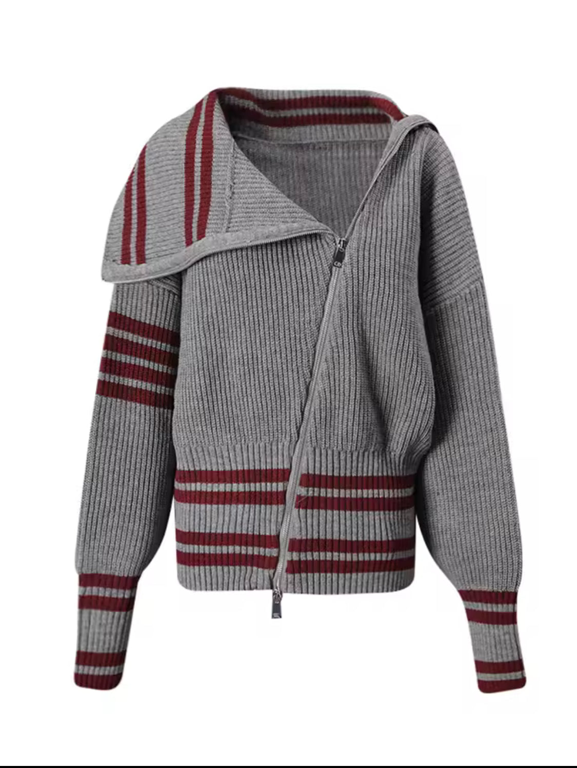 A study in quiet luxury, this rib-knit sweater reimagines modern sophistication. Crafted from a dense, ultra-soft stretch knit, it features an elegant asymmetric zipper that transforms the neckline — from a clean off-shoulder drape to a structured fold-over collar.